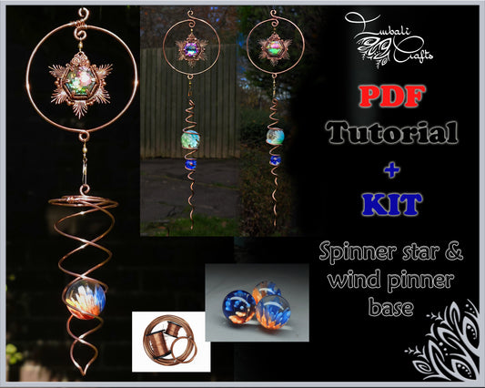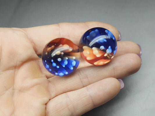 3D Lampwork flower sphere/orb - blue & orange - 25 mm
