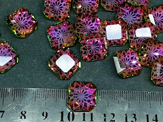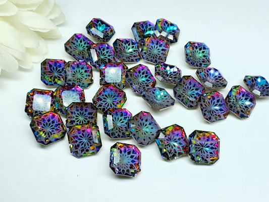 Glass crystal - square - 14 mm - Aurora