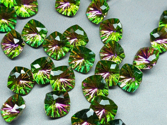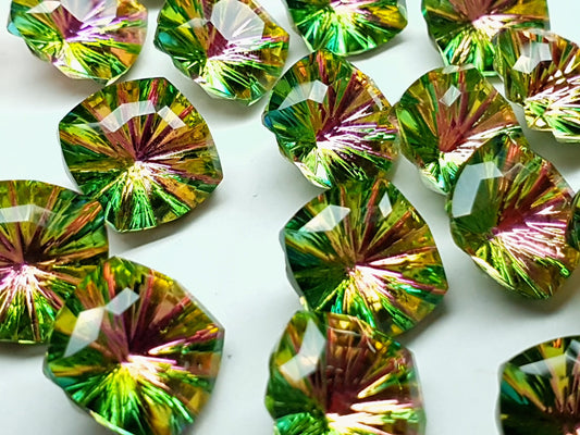 Glass crystal - square - 14 mm - AB green starburst
