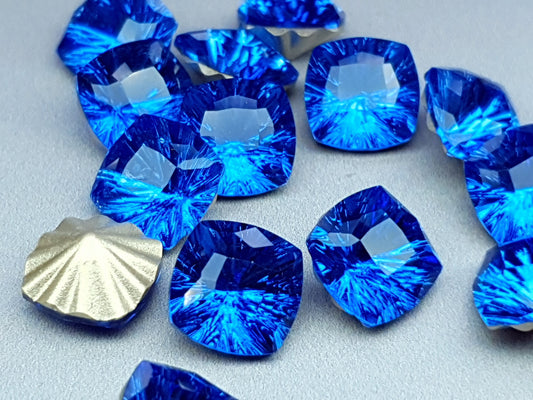 Glass crystal - square - 10 mm - solid blue starburst