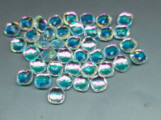 Glass crystal - square - 10 mm - Starburst - Mystic white