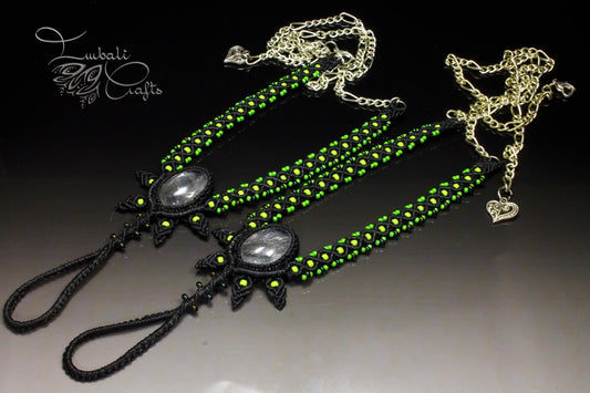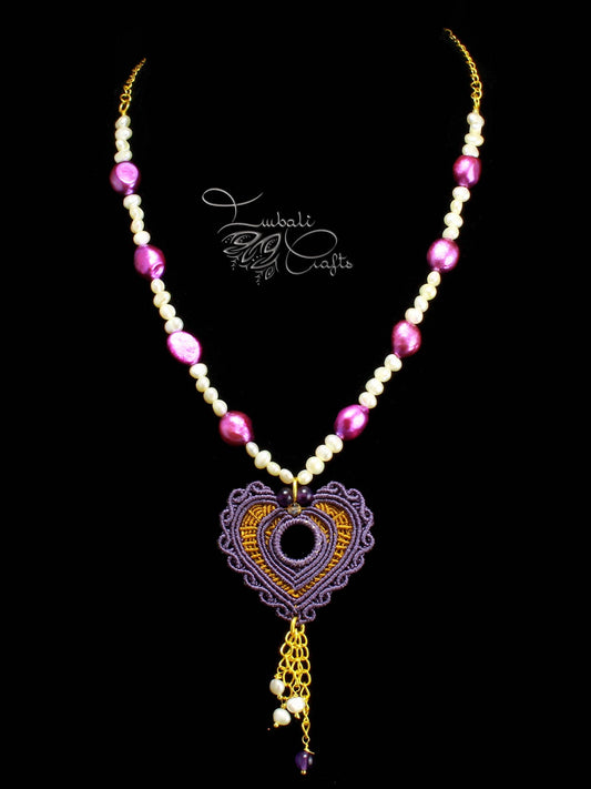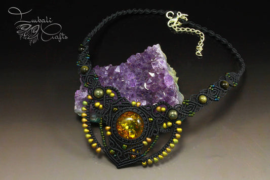 TUTORIAL - Black macrame necklace - heart pendant - natural gemstone necklace