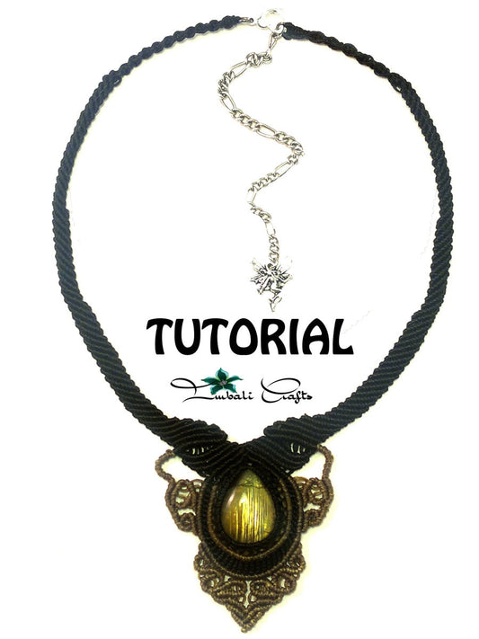 PDF Tutorial - Black boho macrame necklace - Labradorite baroque choker - natural gemstone necklace