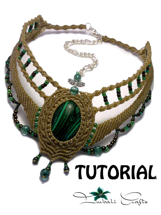 PDF Tutorial - Olive green baroque necklace - Malachite baroque choker - natural gemstone necklace
