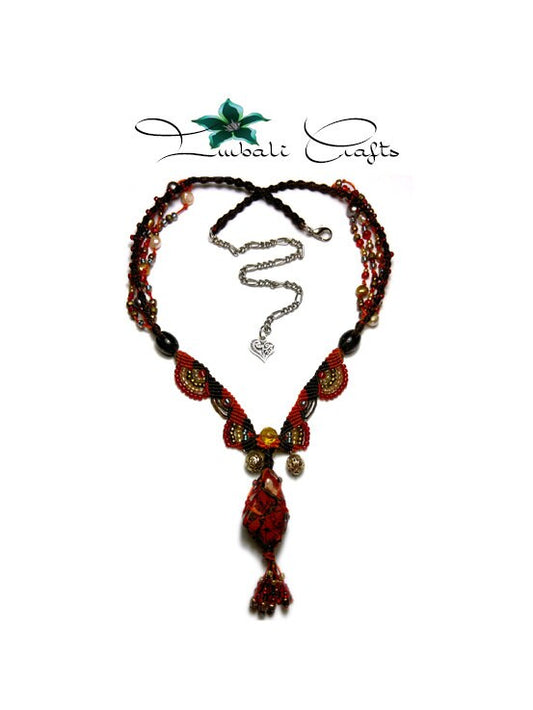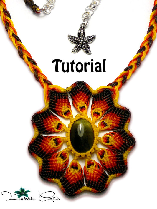 PDF Tutorial - African sunrise necklace -Tigers eye pendant necklace pattern - natural gemstone necklace