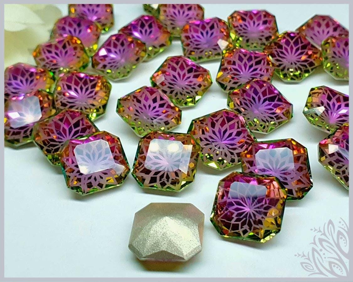 Glass crystal - square - 14 mm - Rivoli - square - 14 mm - Rose garden
