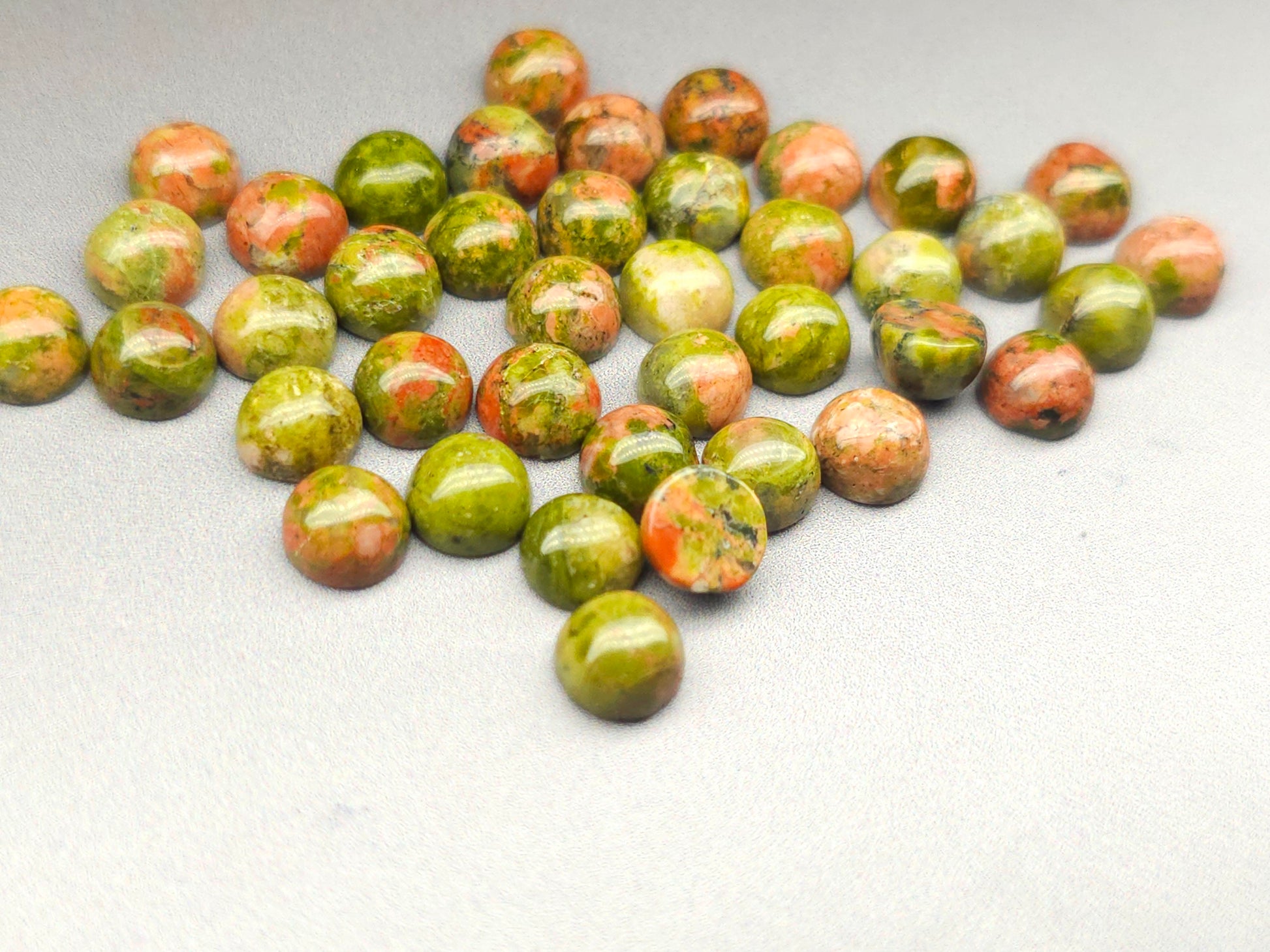 Unakite jasper round cabochon - 6 mm.